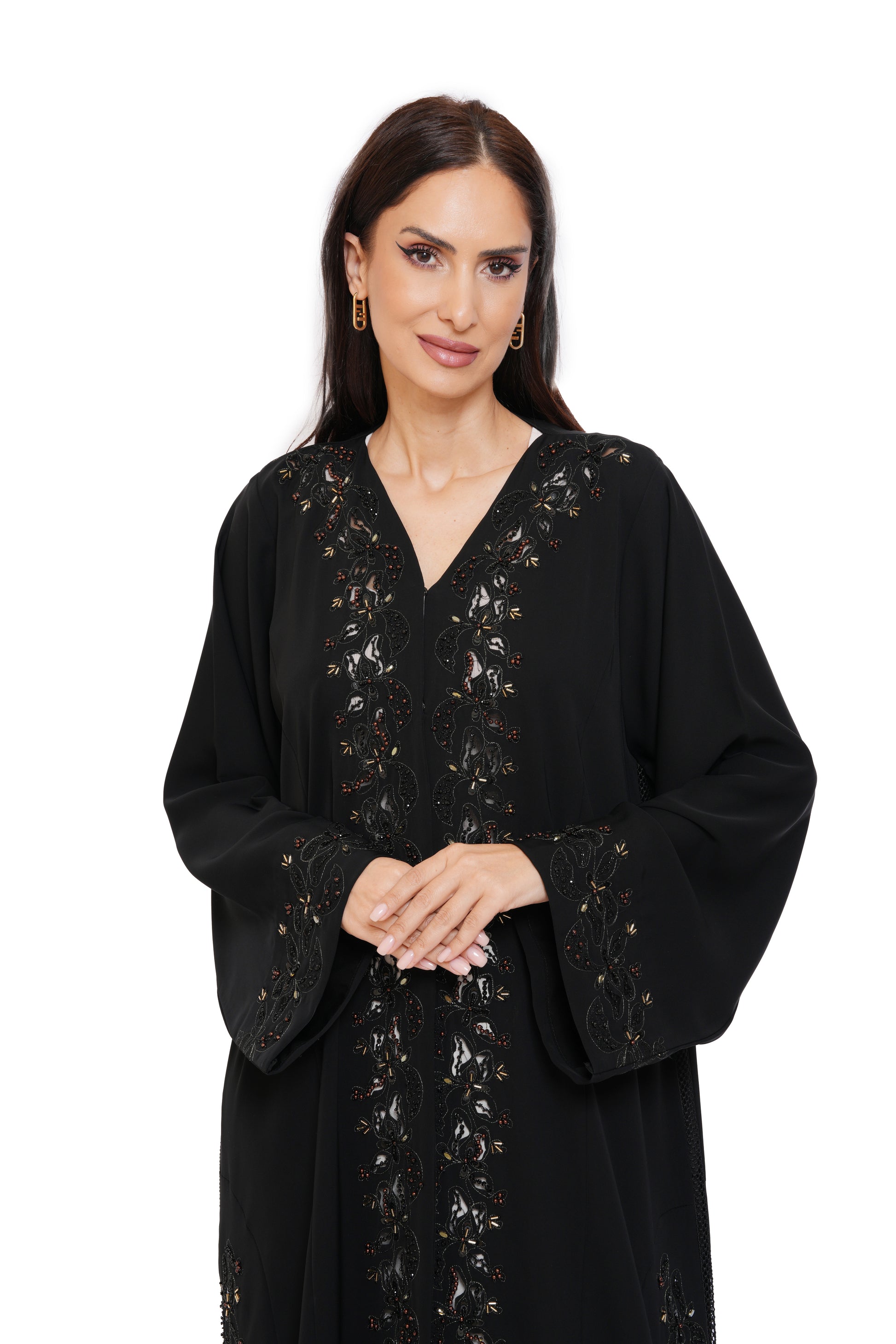 Experience timeless elegance with this handmade abaya, exquisitely crafted to combine luxury modest wear, femininity, and everyday comfort.