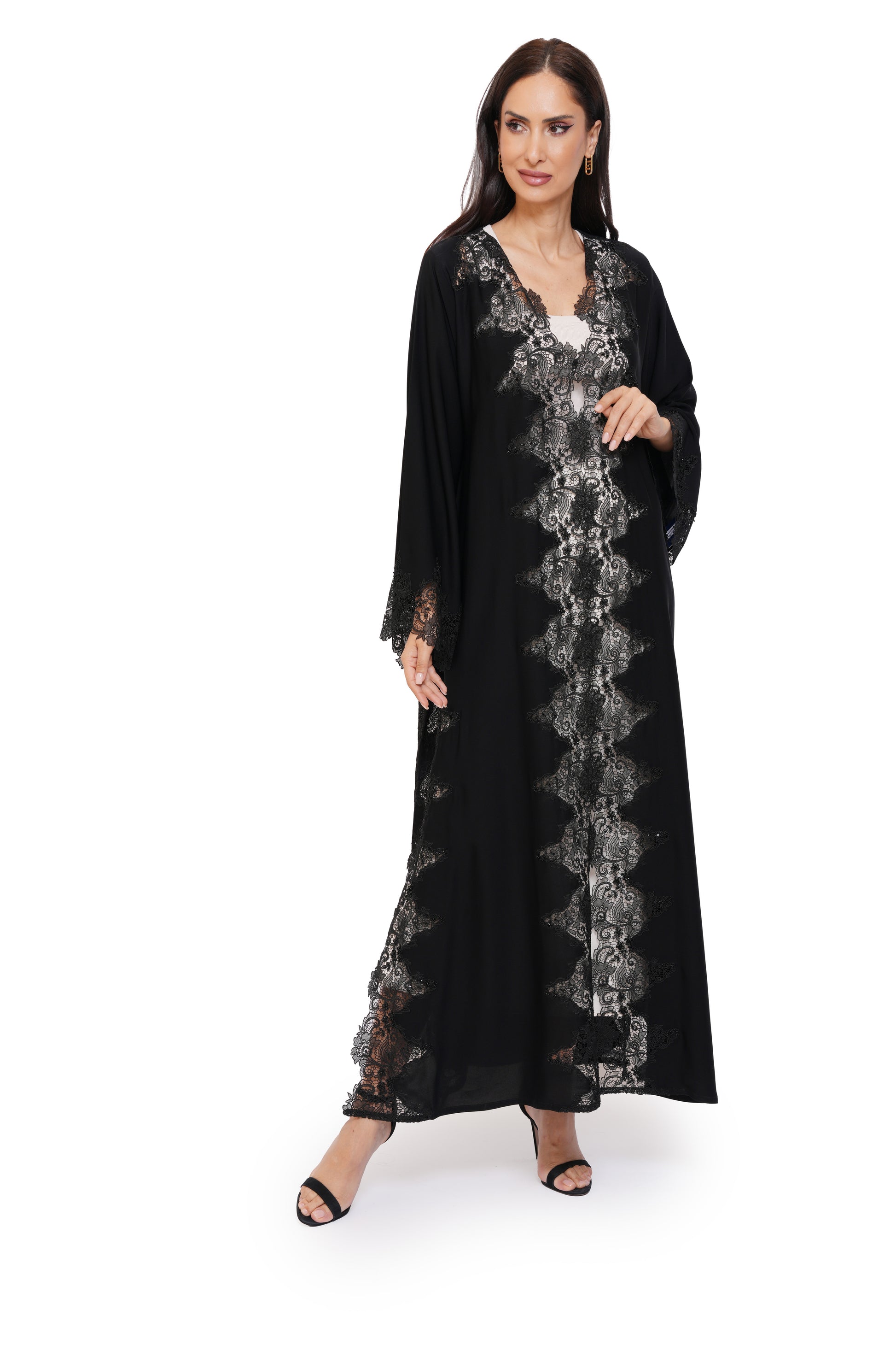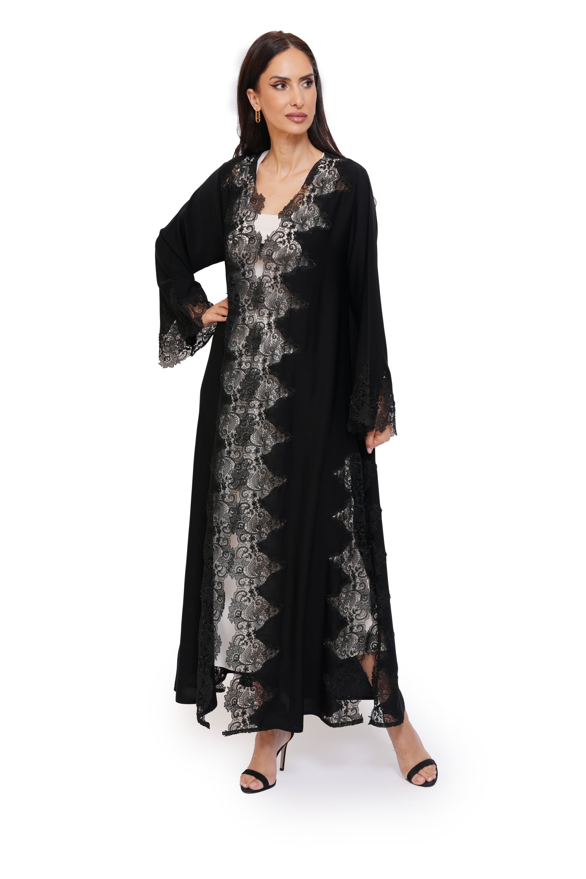 Experience timeless sophistication with this lace abaya, thoughtfully designed to combine luxury modest wear and feminine detailing, perfect for everyday elegance.