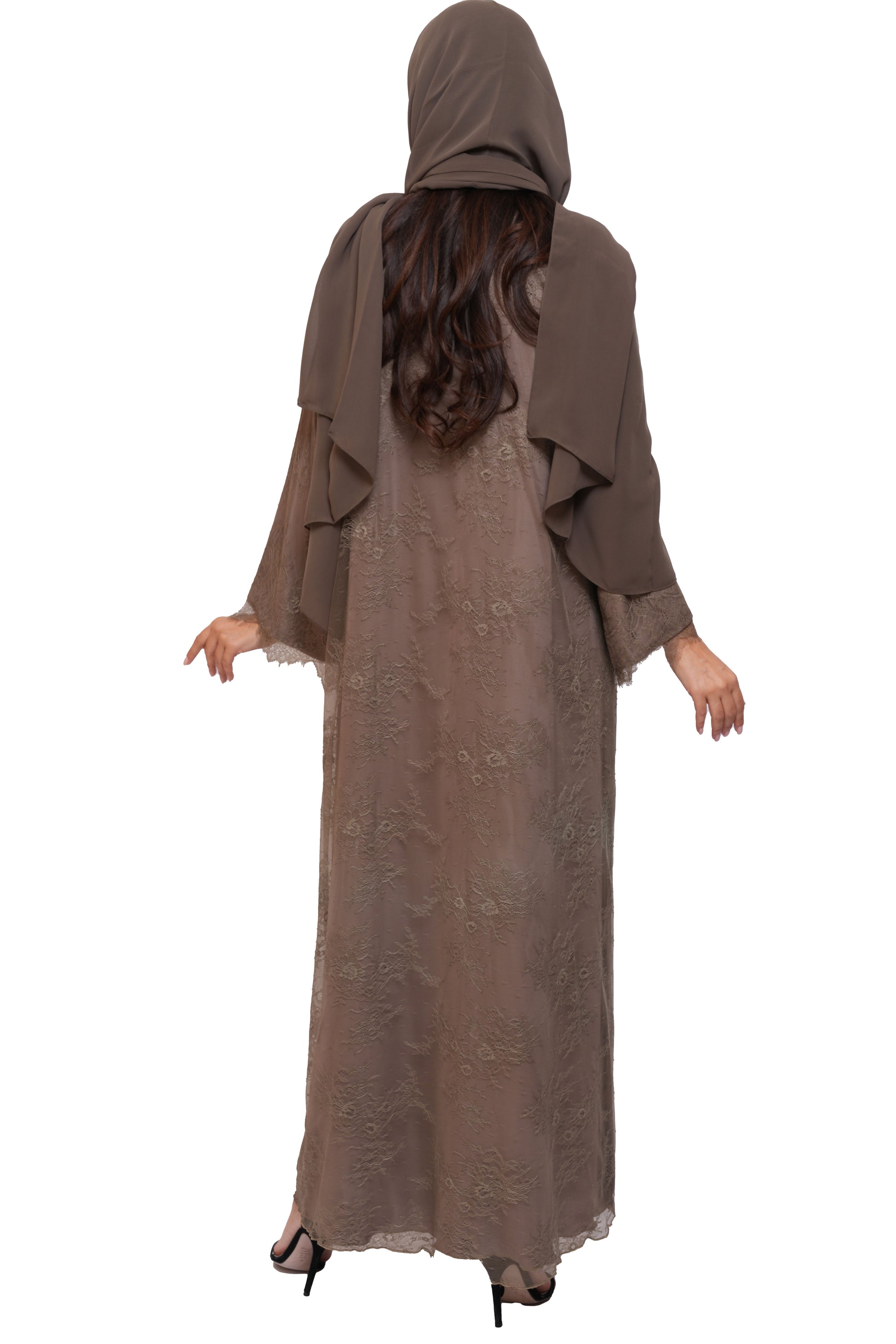 A sophisticated abaya made from soft lace and fully lined for comfort and elegance.