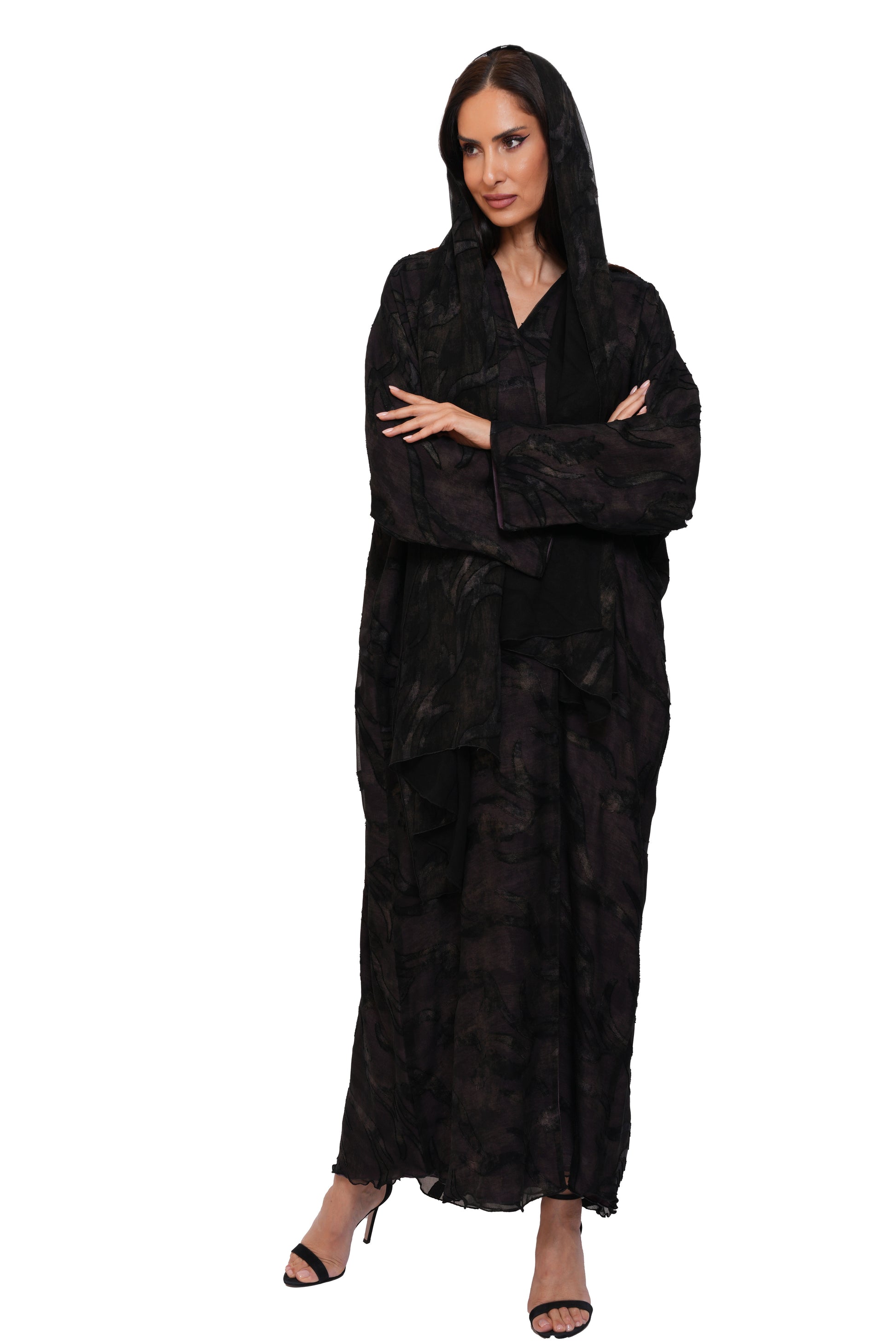 A refined double-chiffon abaya with a classic Bahraini cut, combining lightness and fluidity to give you effortless elegance all day long. Its practical design and soft, subtle color make it an ideal choice for everyday looks—whether for work or casual outings—while a touch of gentle luxury enhances your beauty with simplicity.