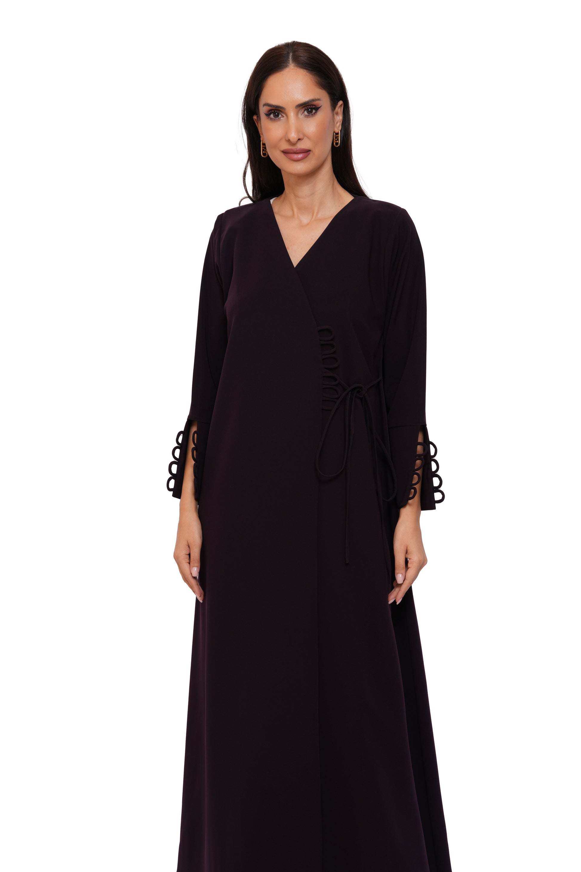 An abaya with delicate sleeve & front details, suitable for all ages and available in several colors.