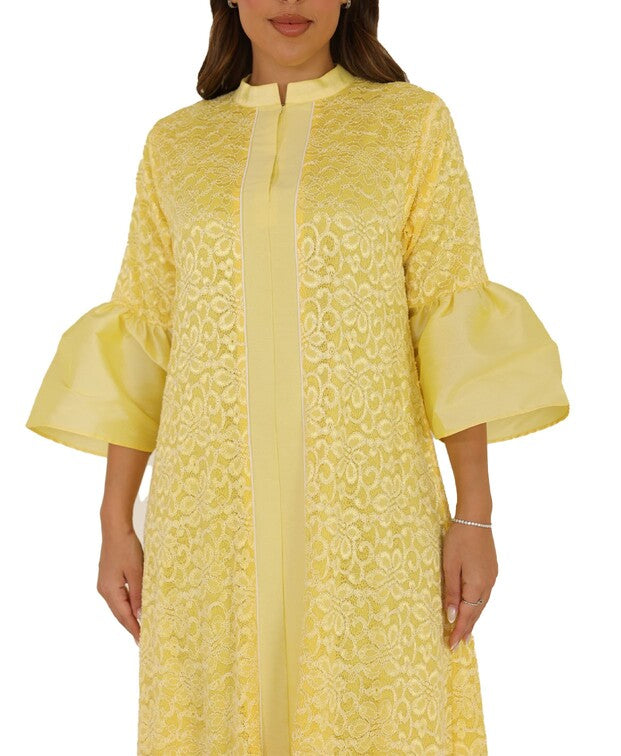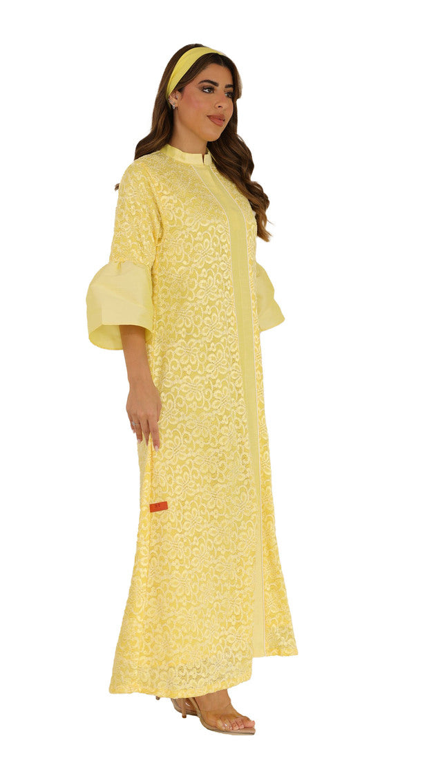 Elegant lace Jalabiya for women, featuring soft fabric and delicate detailing.