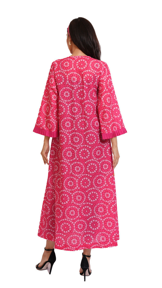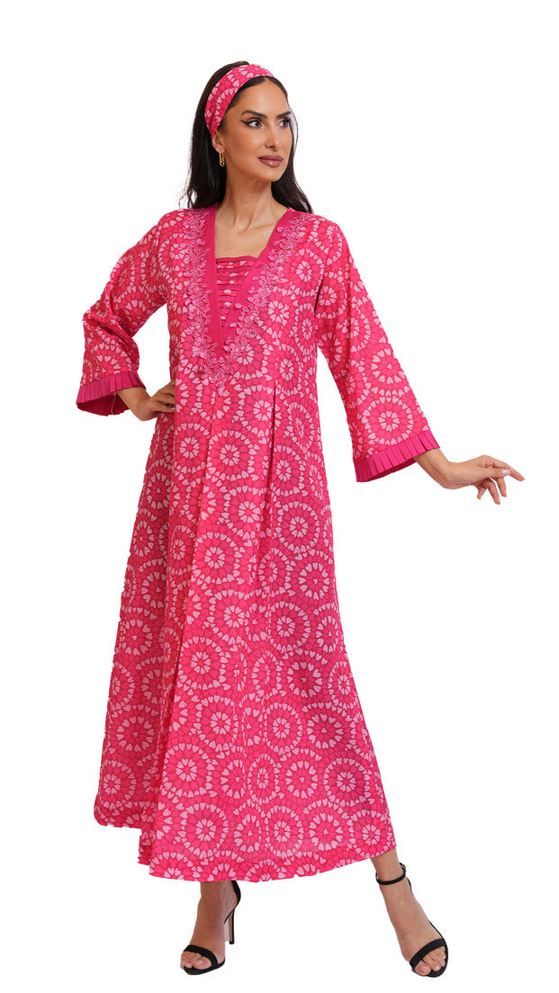 Crafted from natural Jackard cotton, this jalabiya features a relaxed, comfortable fit that flatters every body type—including maternity. Soft, lightweight, and breathable, it delivers effortless elegance for everyday wear.