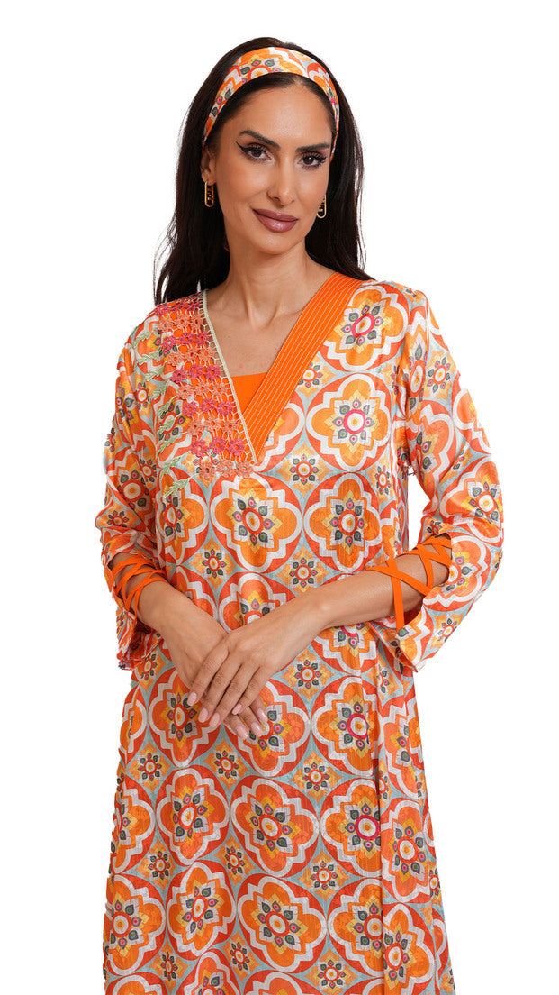 Crafted from premium natural Italian silk, this jalabiya offers a relaxed, graceful fit that complements every body type — including maternity. Soft, lightweight, and breathable, it brings effortless elegance to your everyday style.