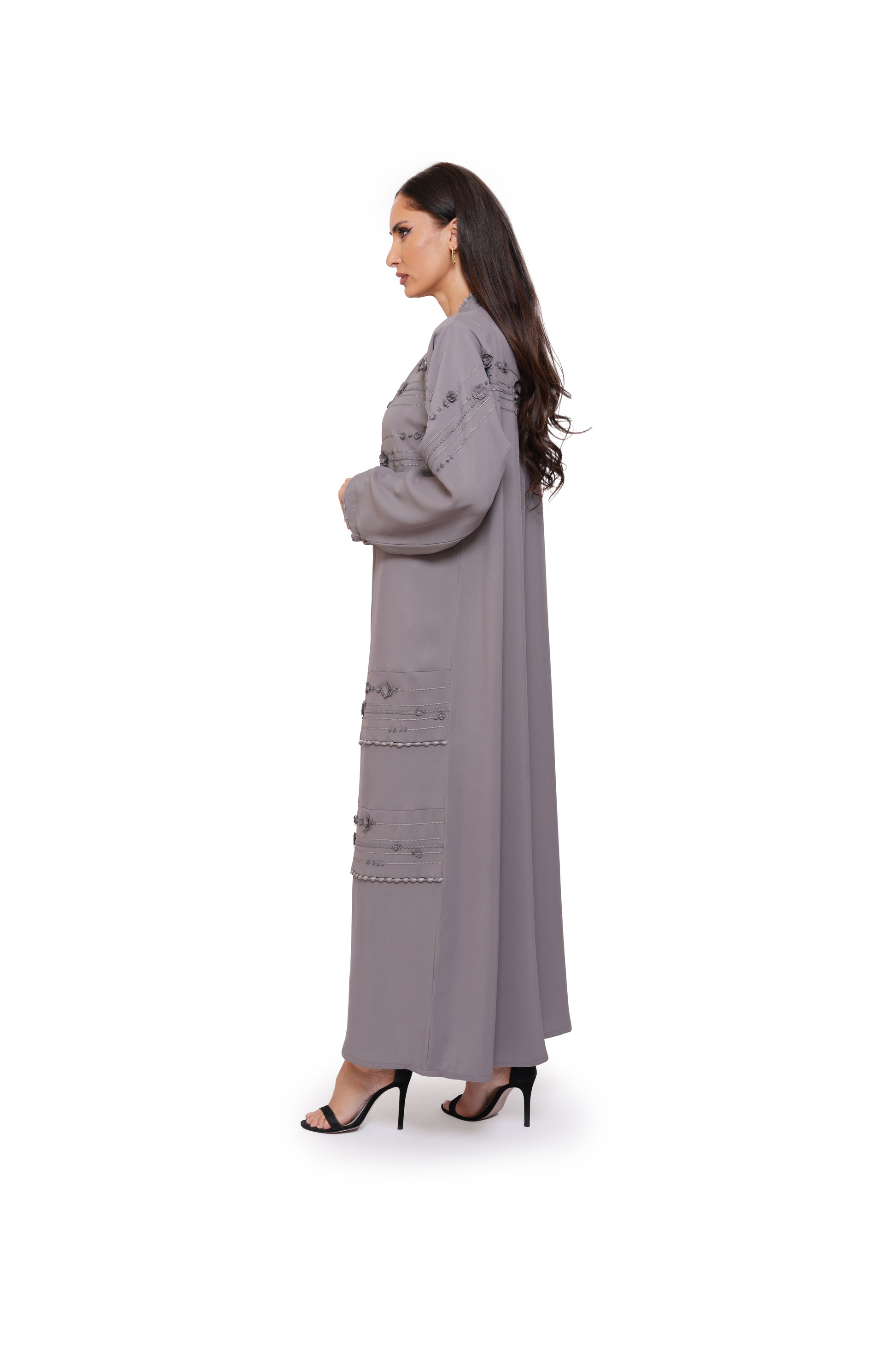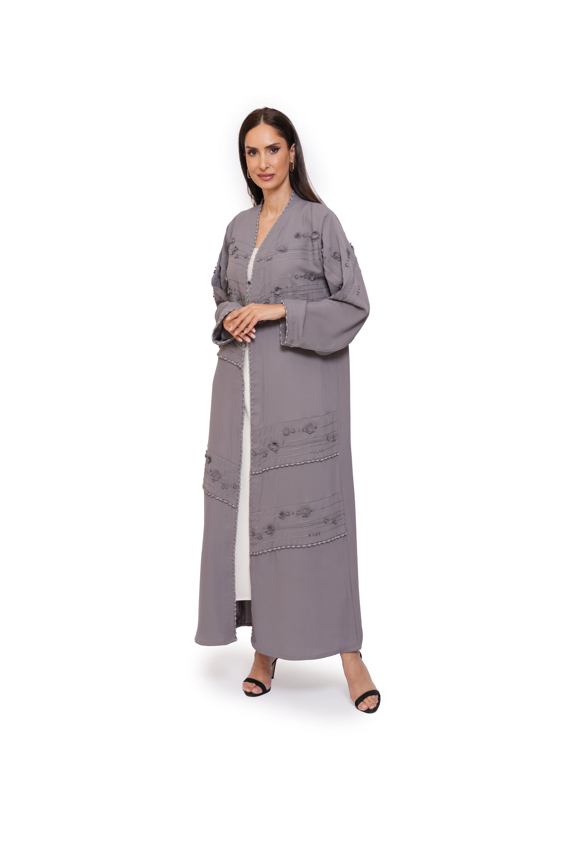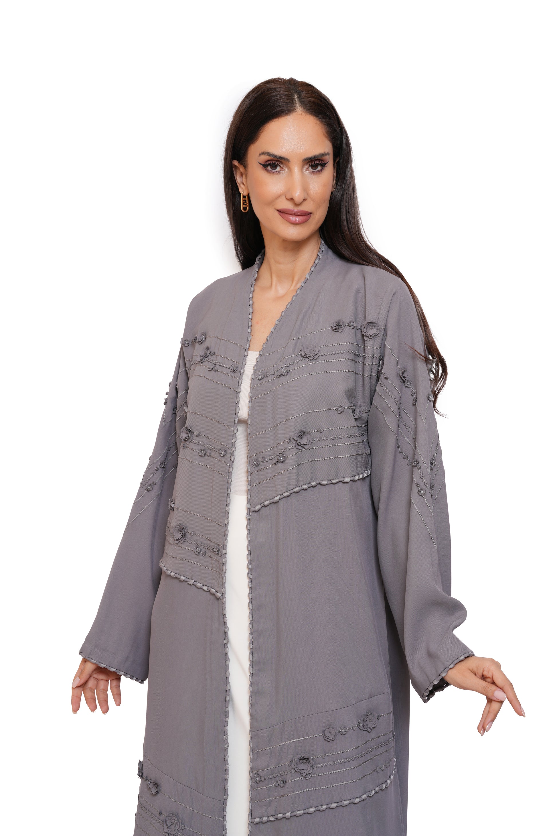 This abaya is crafted with 3D and laser-cut details that look absolutely stunning. Available in classic black and all colors by order.