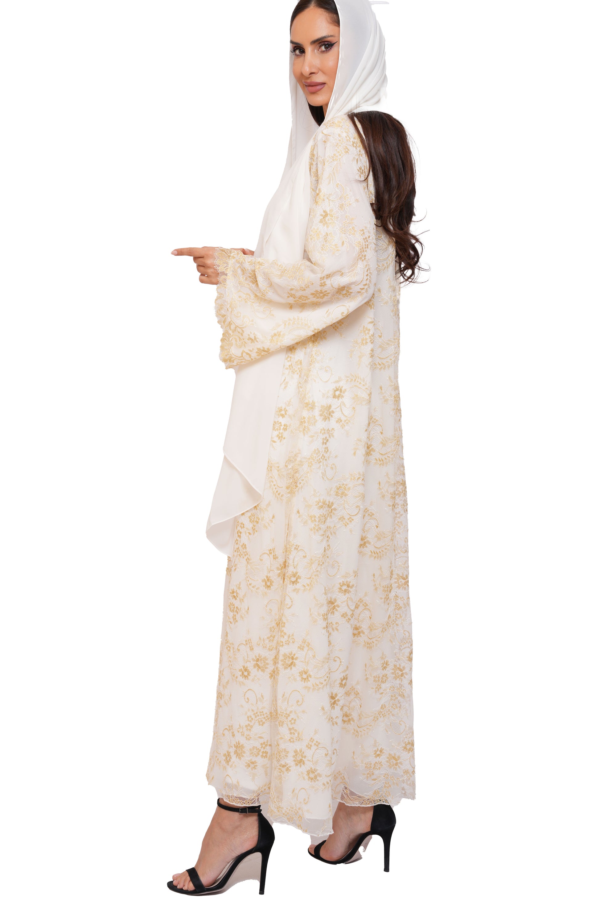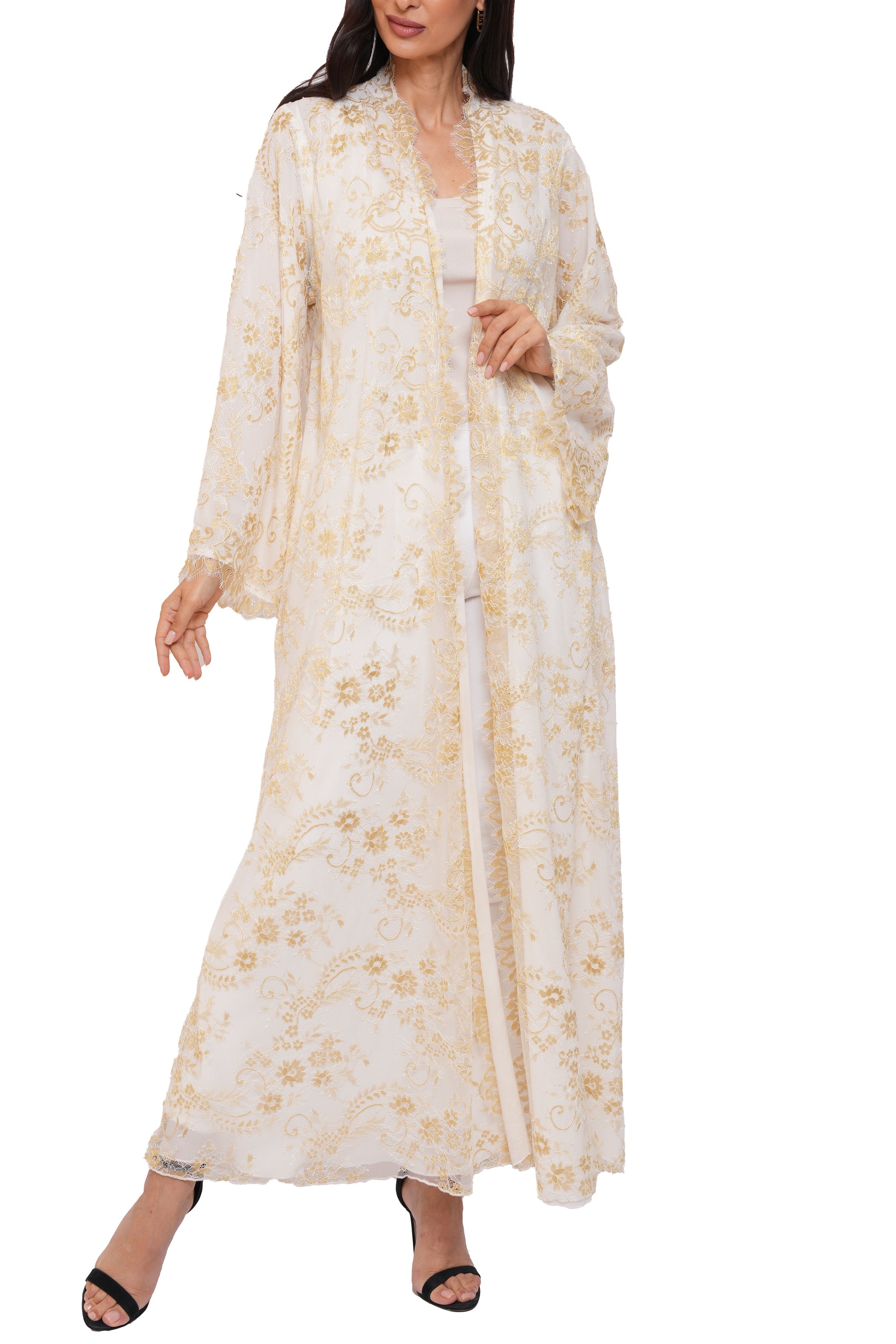 A sophisticated abaya made from soft lace and fully lined for comfort and elegance.